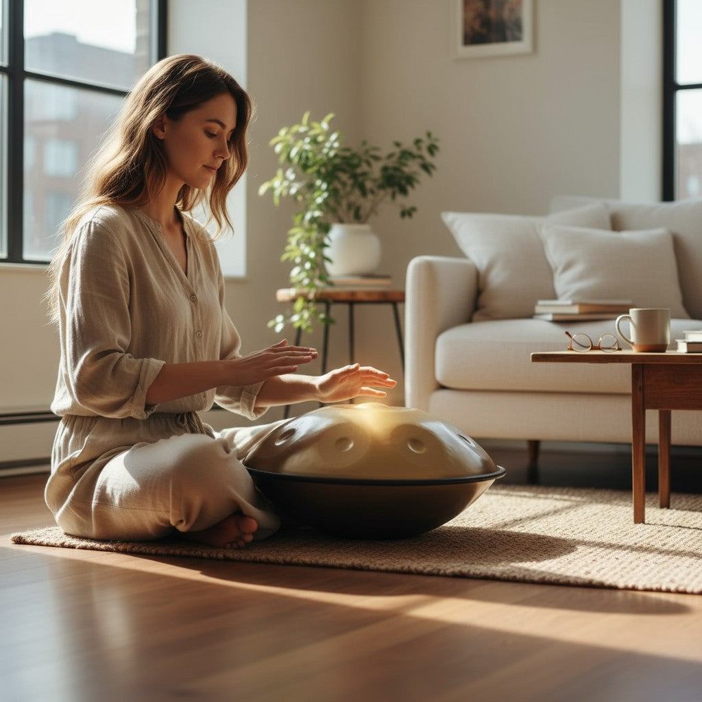 - Débutant : choisis un handpan avec 9 notes (y compris le Ding au centre). Plus simple à prendre en main.