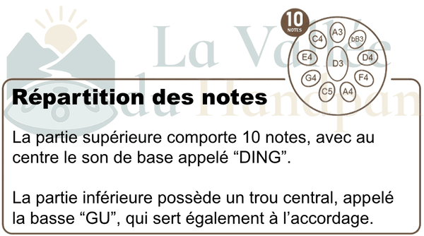 - Débutant : choisis un handpan avec 9 notes (y compris le Ding au centre). Plus simple à prendre en main.